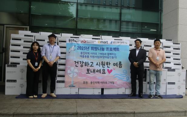 이번 여름용품 지원은 시와 이마트 ▲용인 ▲동백 ▲흥덕 ▲죽전 ▲보라 ▲수지 ▲TR구성점이 함께하는 ‘희망나눔프로젝트’의 일환으로 마련됐다. 시는 기흥무한돌봄네트워크팀(기흥노인복지관)과 함께 2100만원 상당의 여름용품을 취약계층에게 전달하고, 안부를 확인했다.