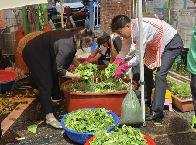 이번 행사는 지속적인 물가 상승으로 식재료 마련에 어려움을 겪는 이웃들을 돕기 위해 마련됐으며 수리동 새마을부녀회와 새마을지도자협의회 회원들이 직접 열무김치 재료를 손수 준비하고 정성껏 담가 전달하며 이웃 사랑을 실천하는 따뜻한 시간을 가졌다.