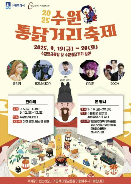 수원시 관계자는 “올해는 화성행궁 광장과 통닭거리를 모두 무대로 삼아 더 다채롭고 풍성한 축제를 마련했다”며 “많은 시민과 관광객이 축제를 찾길 바란다”고 말했다.