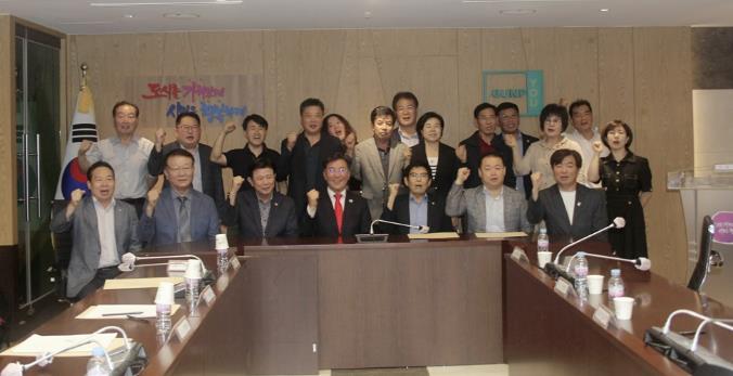 이영호 군포신문 대표의 사회로 진행된 이날 임시총회에는 하은호 시장, 정윤경 도의회부의장, 최진학 국민의힘 위원장, 이영식 노인회장, 주근동 문화원장, 한진운 재개발연합회장, 김공주 학교운영위원장협의회장, 김사녀 주민자치회 회장, 김선옥 통장협의회 회장, 김순희 지역사회보장협의체 회장, 김정옥 리모델링연합회 회장, 김창원 재건축연합회 회장, 박상환 장애인단체총연합회 회장, 서태연 새마을회 회장, 이성민 자율방범대 연합대장이 참석해 지하화 결의를 다졌다. 또 이세균 상인연합회 회장, 이택진 미래도시가치추진단 대표, 정진호 장애인체육회 사무국장, 주성하 위생단체협의회 회장, 채경택 아파트연합회 회장, 한항교 안전보안관 회장도 참석해 “군포시 구간 6개 전철역 지하화를 위해 모든 역량을 총결집하자”고 힘을 보탰다.