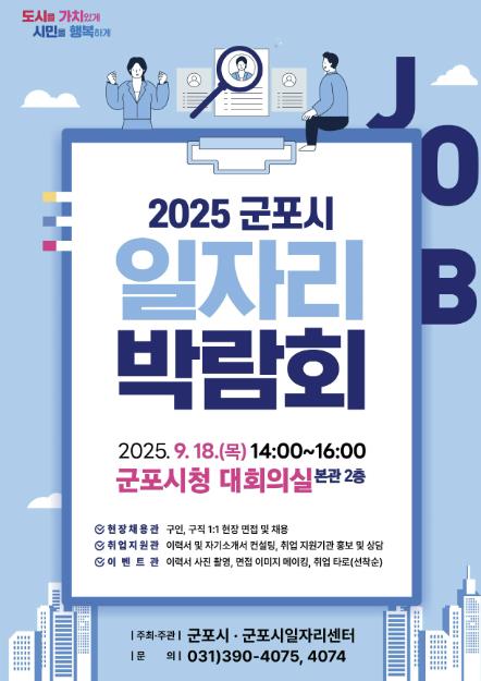 하은호 군포시장은 “이번 일자리 박람회는 지역 내 우수 기업과 구직자를 연결하는 실질적인 취업 지원의 장이 될 것으로 기대된다”면서 “기업체와 시민들의 많은 관심과 참여를 바란다”고 전했다