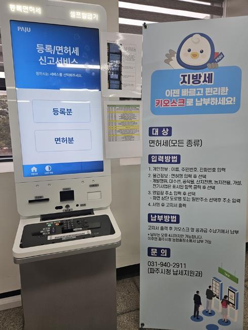 차세대 지방세 시스템과 연계된 무인민원발급기를 통해 정액 등록세와 면허세 중 세무적 판단이 필요 없는 단순 신고의 경우, 납세자가 직접 신고해 고지서를 발급받을 수 있도록 했다.