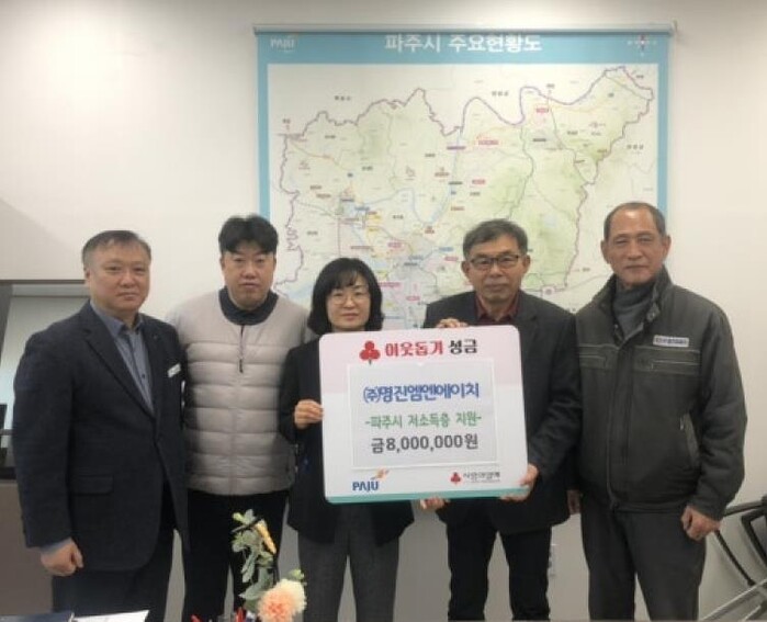 한정열 ㈜명진엠엔에이치 대표이사는 “연말을 맞아 직원들과 함께 지역사회에 따뜻한 온기를 나눌 수 있게 되어 기쁘다”라며 소감을 전했다.
