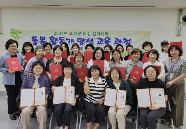 군 관계자는 “이번 교육 과정을 통해 지역 여성들이 돌봄 분야 전문 인력으로 성장하고, 나아가 여성 일자리 창출로도 이어지기를 기대한다”며 “앞으로 우리 군에서 여성 역량 개발을 위한 다양한 지원으로 여성의 사회참여를 확대해 나가도록 노력하겠다”고 말했다.