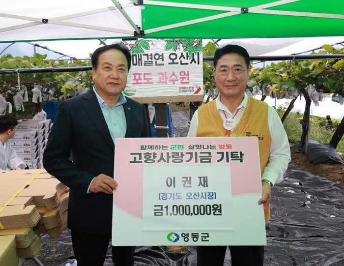 정영철 영동군수는 “오산시와의 변함없는 우호와 교류가 오늘의 소중한 결실로 이어져 뜻깊게 생각한다”라며 “기탁해주신 고향사랑기부금은 군민과 지역 발전을 위해 가치 있게 활용하겠다”라고 화답했다.