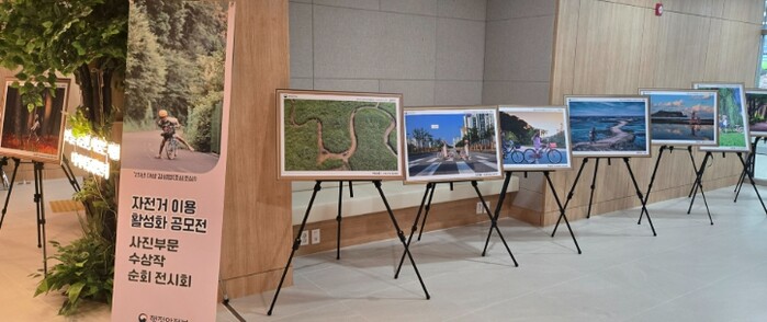 전시 작품은 전국을 대상으로 진행된 사진공모전에서 선정된 수상작들로, 자전거를 매개로 한 일상의 모습과 자연, 사람 중심의 교통문화 등을 생생하게 담아내고 있다.