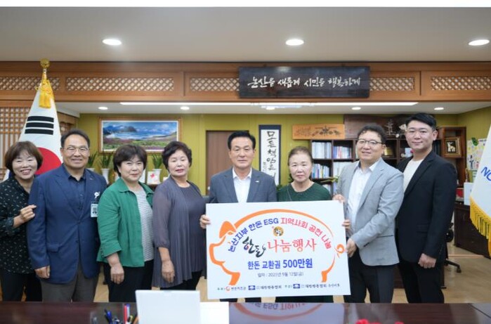 (사)대한한돈협회 논산시지부 여성회는 논산시에 500만 원 상당의 한돈 구매 교환권을 기탁했다.