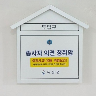 한편 옥천군은 종사자 의견청취함 운영과 함께 정기적인 안전점검, 위험성평가를 통한 위험요인 개선, 안전보건 교육 등을 함께 추진하여 재해예방 중심의 안전문화 정착에 지속적으로 힘쓸 계획이다.