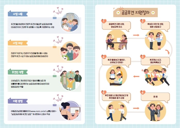 보호대상아동 공공후견 지원사업은 국정과제에 포함된 것으로, 국가가 아동 보호 책임을 직접 맡는 체계 구축을 목표로 하고 있다.