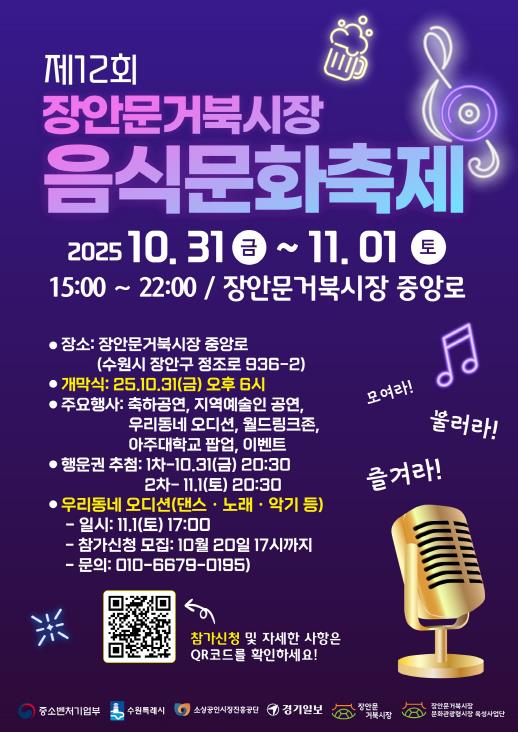 행사 기간에 시장 내 주요 거리에서는 상인들이 준비한 다양한 음식과 특산품을 만나볼 수 있다. 장안문 거북시장의 전통 막걸리 ‘장안문 별주’ 홍보부스와 장안문 시장 활성화 프로젝트를 진행하는 아주대학교 파란학기제 ‘터틀랩스’팀의 팝업스토어 등이 운영될 예정이다.