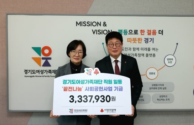 [세계로컬타임즈 이종화 기자] 경기도여성가족재단이 임직원 ‘끝전 나눔 운동’으로 약 330만 원을 사회복지공동모금회 경기도지회에 전달했다.