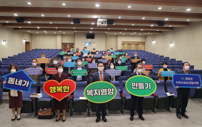 협의체 위원들은 복지사각지대 없는 행복영암 실현의지를 다짐하는 '동네가 행복한 복지영암'이라는 슬로건 퍼포먼스, 2021년도 활동영상 시청, 동아보건대학교 배충진 교수의 '위드코로나 시대 협의체 역할과 방향'에 대한 특강을 통해 복지환경 변화에 따른 방향을 모색하는 시간을 가졌다.