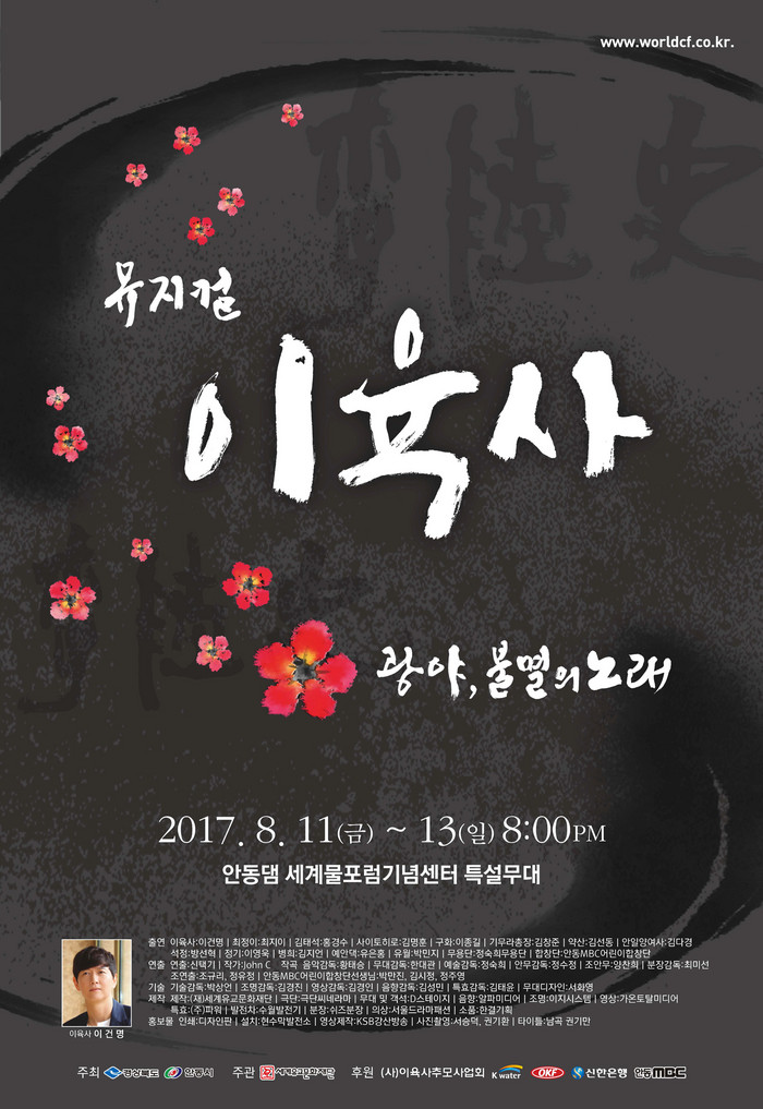 [세계로컬신문 신동만 기자] 경상북도와 안동시가 주최하고 (재)세계유교문화재단이 주관하는 뮤지컬 ‘이육사’가 오는 11일부터 13일까지 매일 저녁 8시부터 100분간 안동댐 세계물포럼기념센터 야외특설무대에서 열린다.