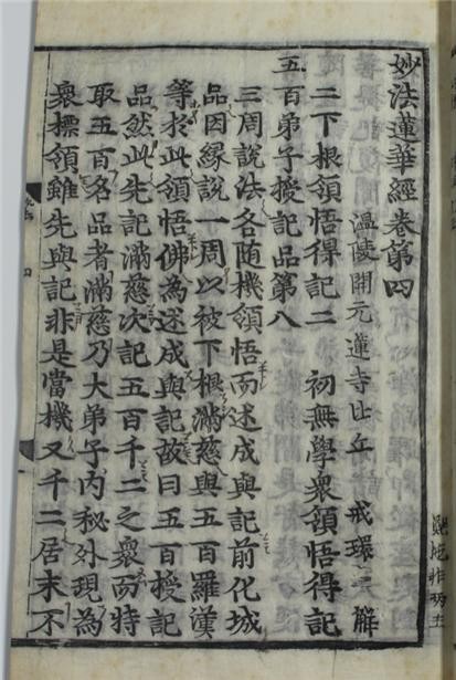 ‘묘법연화경 권3~4’는 다른 불서와 다르게 사찰에서 민간에 위탁해 간행한 점이 특징으로 보존상태가 거의 온전한 임진왜란 이전의 고간본이라는 점과 간행경위, 참여자, 시주질 등이 함께 수록돼 있는 점이 돋보인다는 평을 받았다.