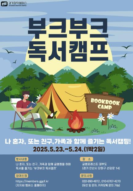 이어지는 예술캠프는 6월 26~27일, 7월 11~13일, 9월 19~20일, 10월 17~18일, 11월 13~14일에 운영 예정이다. 이번 '부크부크 독서캠프'를 비롯해 앞으로 운영될 모든 예술캠프의 세부일정 확인 및 참여 신청은 경기창작캠퍼스 홈페이지를 통해 가능하다. 각 회차마다 운영일 2주 전 예약창이 열린다. 참여비는 1팀당 50,000원으로, 숙박비와 프로그램 참여비가 포함된 가격이다.