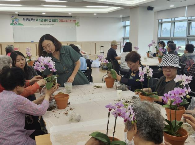 이번 마음치유프로그램으로 운영된 원예실습은 한국난 화분 만들기를 통해 대상자들이 심리적 안정감을 얻고 각 가정에서의 꽃 키우기를 통해 성취감 및 자존감을 증진하도록 했다. 이어서 진행된 아로마 비누 만들기는 향기를 통한 우울감 해소 및 심신 안정을 독려했다.