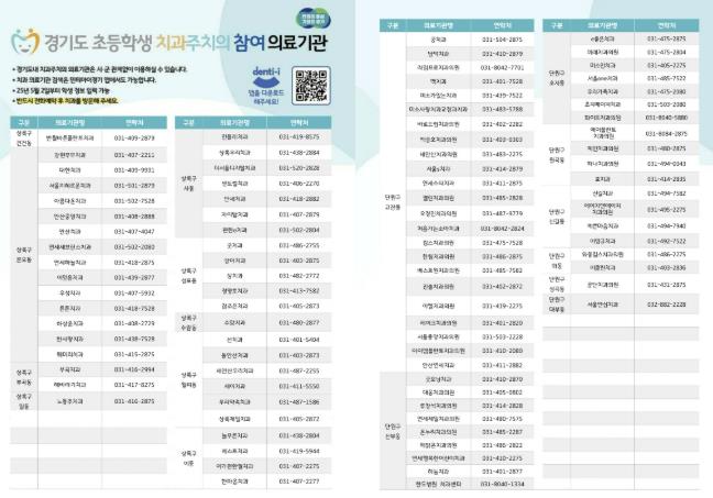 한편, 사업 이용을 원하는 관내 초등학교 4학년생은 덴티아이 모바일 어플리케이션에서 온라인 구강 문진표를 우선 작성하고, 온라인 구강보건교육을 이수한 뒤 치과주치의 지정 병원에 전화 예약 후 방문하면 된다.