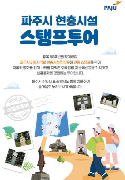 도장찍기 여행 장소는 적성면 영국군 설마리 전투비, 파주읍 통일공원, 탄현면 오두산통일 전망대 내 고당 조만식선생 동상, 조리읍 파주3.1운동기념비, 광탄면 파주독립광탄공원 등 5곳이다.