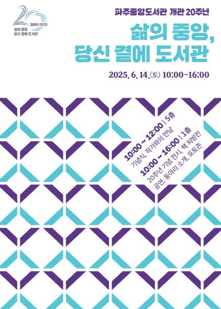 중앙도서관은 2005년 개관 이래 지역사회의 지식·문화 중심지로 자리매김해 왔으며, 이번 행사를 통해 도서관과 시민이 함께 걸어온 지난 시간을 되짚어보고, 도서관의 미래를 시민과 함께 그려나가고자 한다.