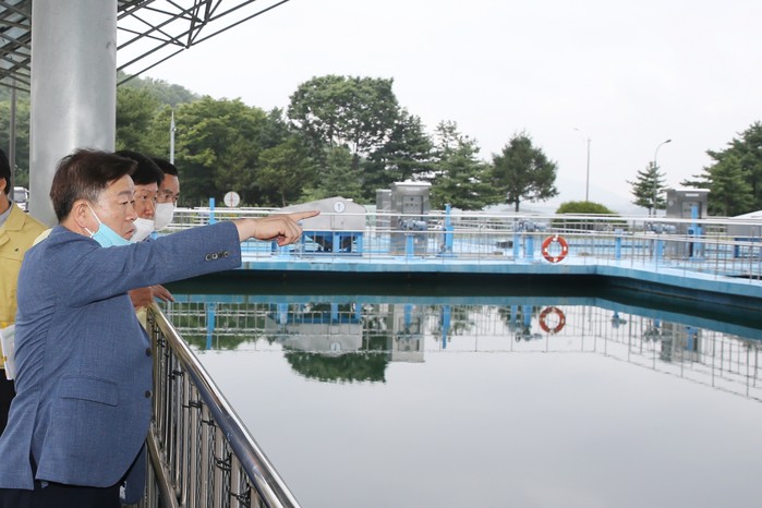 | ▲박승원 광명시장은 20일 노온정수장을 방문해 주요 정수시설에 대한 현장점검을 하고 있다.(사진=광명시 제공) |