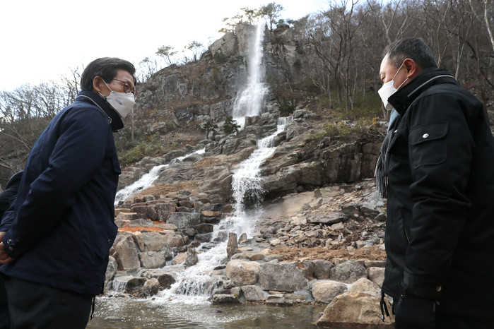 | ▲ 선운사도립공원에 조성된 경관폭포 (사진=고창군) |