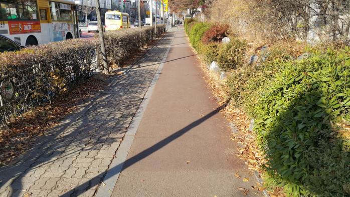 | ▲ 성남시가 내년 2월말까지 노후된 자전거도로 정비에 나선다. 사진은 정자동 탄천초등학교 앞 자전거 도로 모습.<사진제공=성남시청> |