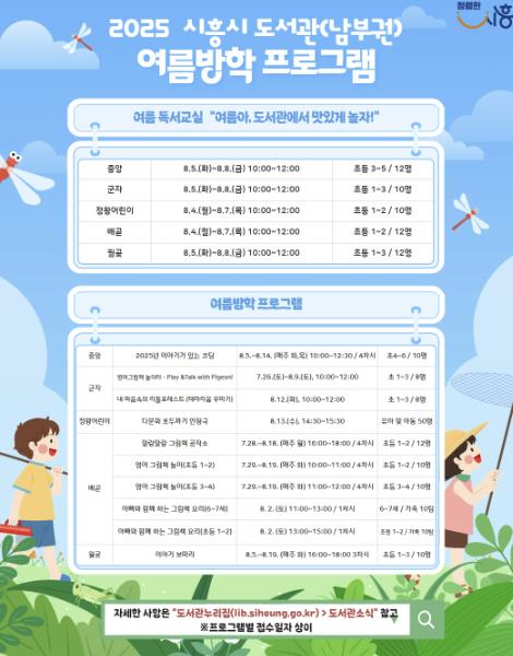 전행주 시흥시중앙도서관장은 “이번 여름 프로그램은 다양한 체험을 통해 무더위를 잊고 마음껏 책과 문화를 즐길 수 있도록 기획됐다”라며 “아이들과 시민들의 많은 관심과 참여를 바란다”라고 전했다.