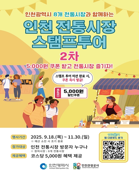 이번 2차 행사에는 ▲강화풍물시장 ▲신포국제시장 ▲현대시장 ▲송도역전시장 ▲옥련전통시장 ▲작전시장 ▲계산시장 ▲계양산전통시장 등 총 8개 전통시장이 참여한다.