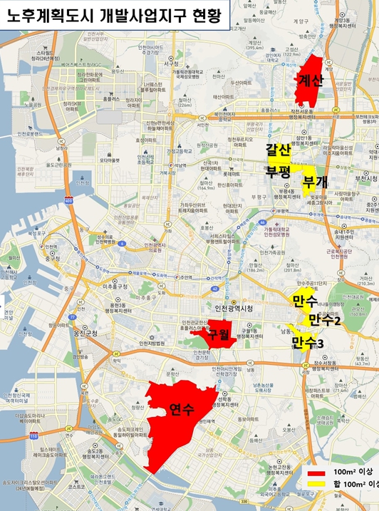 인천에서는 ▲연수·선학 ▲구월 ▲계산 ▲갈산·부평·부개 ▲만수1·2·3택지 등 5개 지구가 노후계획도시정비 대상 지역이다.