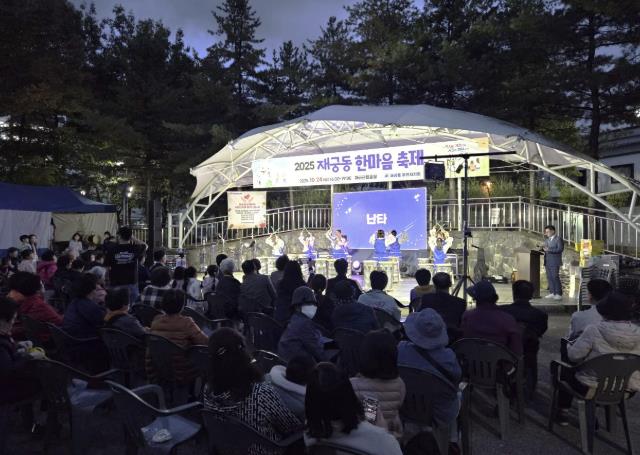 무대에서는 주민 화합을 위한 다채로운 공연이 펼쳐졌다. 먼저 재궁동 사생대회 시상을 통해 지역 어린이들의 노력을 격려했으며, 이어 어린이 난타, 줌바댄스, 통기타 연주, 가곡, 장구난타 등 주민자치 프로그램 참여자들과 공연자들이 그동안 갈고닦은 실력을 유감없이 선보였다. 특히, 초청된 밴드 건아들의 특별 공연은 축제의 분위기를 최고조로 끌어올리며 모든 세대가 함께 박수 치고 노래하는 화합의 장을 만들었다.