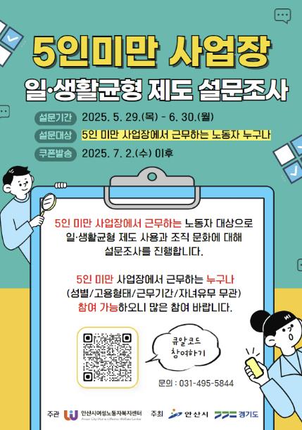 이번 설문조사는 상시근로자 수 5인 미만의 영세 사업장에서 노동자가 일·생활 균형 제도(출산휴가, 육아휴직, 연차유급휴가 등)를 사용할 때의 어려움과 사업장 내 분위기를 확인하고자 추진됐다.