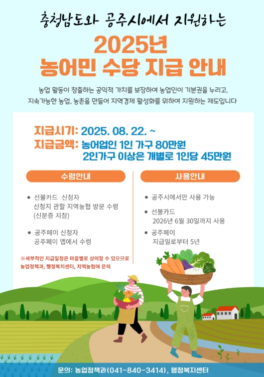 수당은 사전에 선택한 농협 선불카드 또는 공주페이로 지급된다.