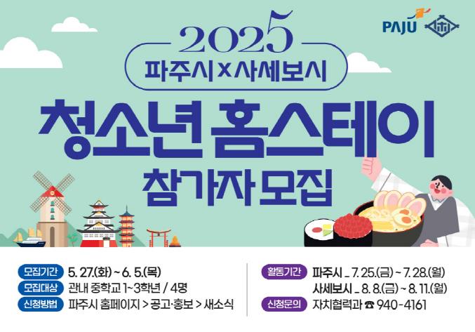 ‘파주-일본 사세보시 청소년 홈스테이’는 두 도시의 청소년들이 서로의 가정을 방문해 현지 생활을 체험해 보는 프로그램이다.