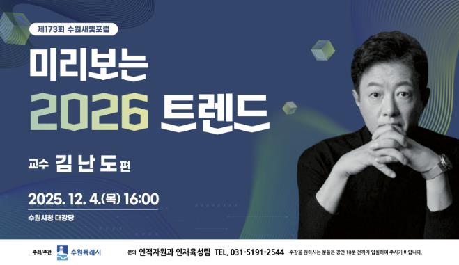 김난도 교수는 ‘미리보는 트렌드 2026’을 주제로 강연한다. 2025년 한 해의 트렌드를 되짚어 보며 사회와 소비의 변화를 해석하고, 앞으로 다가올 2026년의 새로운 트렌드를 이야기한다.