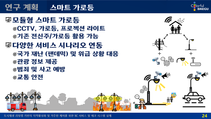 | ▲ 재난 및 위급 상황 안내 · 관광 정보 제공 · 범죄 및 사고 예방 등의 기능을 수행하는 '스마트 가로등'. (자료=대구시 제공) |