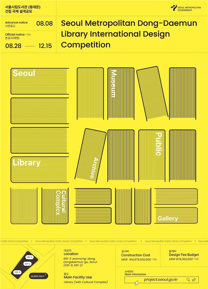 서울시는 창의적인 아이디어가 담긴 설계안을 유도, 서울시립도서관(동대문)을 서울을 대표하는 '혁신디자인 건축물'로 조성하기 위해 설계 공모를 2단계에 걸쳐 효율적으로 진행한다.