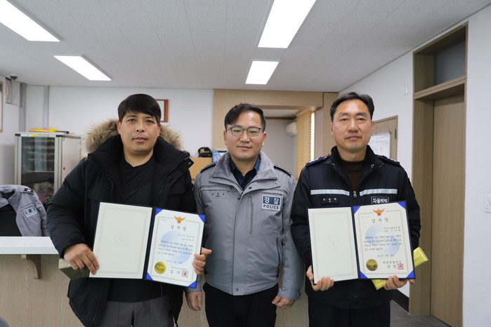 [세계로컬타임즈 류종민 기자] 경북 의성경찰서는 지난 22일 봉양파출소관내 의성군 비안면 서부리 주거지에서 출타 후 길을 잃고 실종된 치매 노인을 안전하게 구조한 공로로 김대수 비안의용소방대원 및 지서백 비안자율방범대원 등 유공자 2명에 대해 경북지방경찰청장 및 경찰서장 감사장을 전달했다.