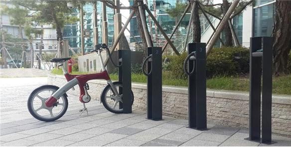 | ▲ 서울 마곡지구에 설치된 자전거·전동킥보드용 스마트단말과 이를 이용한 주차·충전·공유 솔루션. (사진=서울시 제공) |