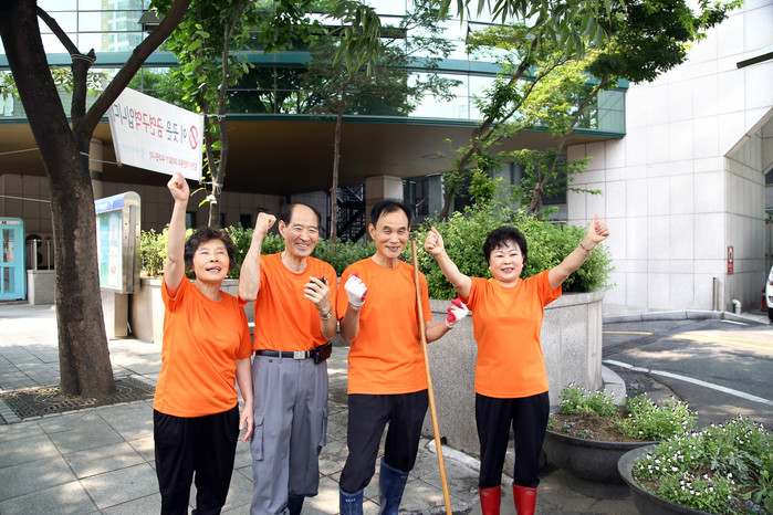 | ▲ 서울 동작구 어르신행복주식회사가 2016년 노인일자리사업 우수기관평가에서 고령자친화기업분야 '최우수기관'으로 선정됐다. 사진은 어르신행복주식회사에 채용된 어르신들이 응원의 포즈를 취하고 있는 모습. <사진제공=동작구청> |