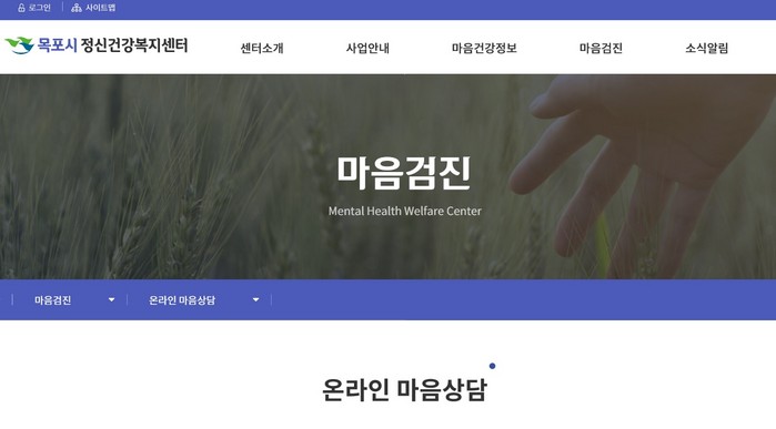 또한 목포시정신건강복지센터 홈페이지를 통해 마음 자가검진, 비대면 온라인 마음상담도 가능하다.