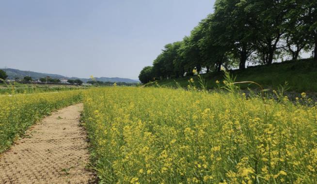 유채꽃들은 평탄한 지형에 아름답게 펼쳐져 있고 산책로가 정비돼 있어 꽃밭 사이를 나비들과 함께 거닐 수 있을 뿐만 아니라 나무 그늘이 우거진 벚꽃길에서도 유채꽃을 만끽할 수 있어 산책 코스로도 적합해 자연과 함께 산책을 즐기려는 이들의 발걸음이 이어지고 있다.