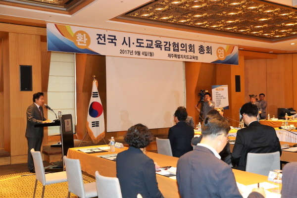 | ▲ 전국시·도교육감협의회가 지난 4일 제주 하얏트 리젠시 호텔에서 총회를 열고 현안에 대해 논의하고 있다.<사진제공=제주도교육청> |