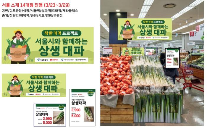 최근 가격과 산지 동향, 품질 상태 등을 따져 선정한 올해 첫 품목은 대파다. ▴롯데마트 ▴대아청과(주) ▴서울시농수산식품공사와 협력해 유통·판매마진을 최소화한 대파 20톤을 공급하기로 했다.