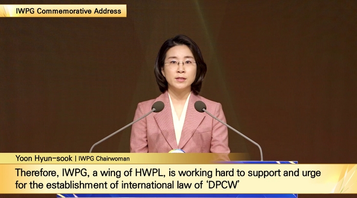 이어 윤 대표는 “세계 각국의 대통령께 부탁한다. 지속가능한 평화가 실현될 수 있도록 ‘DPCW’가 유엔에 국제법으로 상정되고 법제화될 수 있도록 신속한 행동을 보여주길 간절히 부탁한다”라고 호소했다.