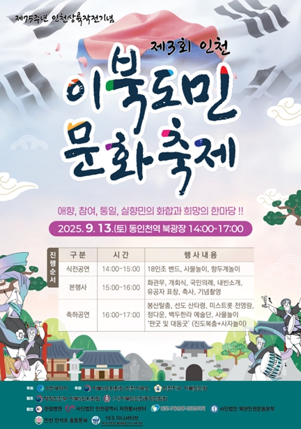 인천에는 약 2,800여 명의 실향민이 거주하고 있으며, 이번 축제는 이들의 애환을 담아낸 인천의 역사성과 지리적 특성을 반영해 기획됐다. 특히 올해는 ‘제75주년 인천상륙작전 기념 주간’과 연계해 개최되며, 인천 지역 이북도민과 북한이탈주민, 일반 시민은 물론 전국의 이북도민 약 800여 명이 참여할 예정이다.