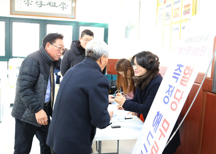 | ▲ 충주시보건소가 운영하는 당뇨체험부스에서 시민들이 혈당검사를 받고 있는 모습.<사진제공=충주시청> |