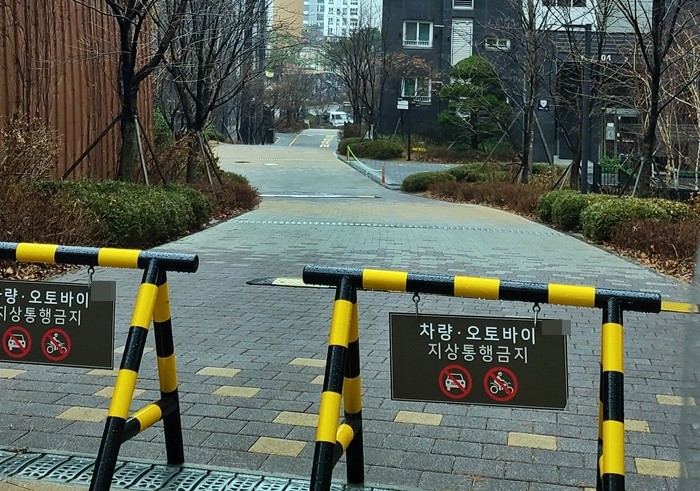 | ▲ 일부 아파트‧빌딩 등에서 이른바 '배달기사 갑질'이 논란이 된 가운데 배달업계가 집단행동에 나섰다. 서울 한 아파트 단지에 오토바이 출입을 금지하는 팻말이 걸려있다.(사진=라이더유니온 제공) |