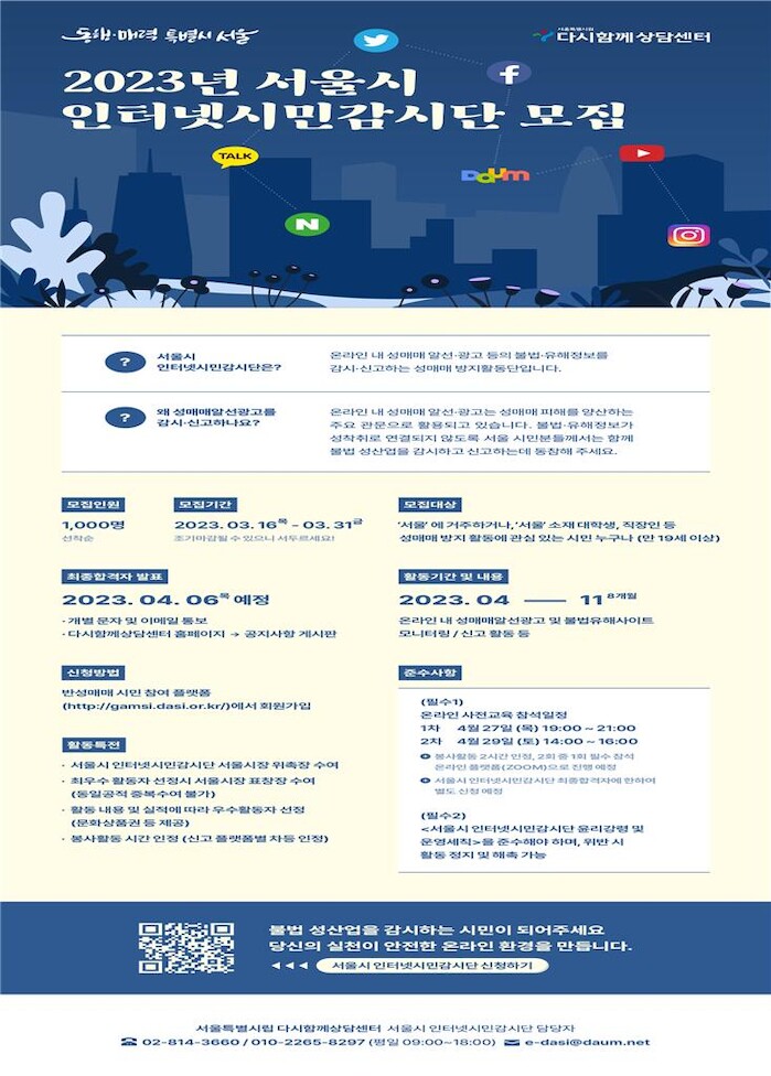 ‘시민감시단’은 서울시가 불법 성산업을 근절하기 위해 2011년 발족한 시민 참여 온라인 모니터링단으로, 시립 다시함께상담센터와 공동 운영한다.