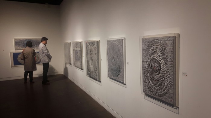 | ▲ 관람객들이 허회태 작가의 작품을 둘러보며 감상하고 있다. |