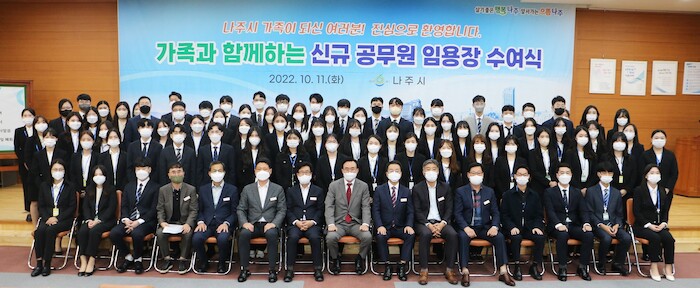 [세계로컬타임즈 강석운 기자] 나주시(시장 윤병태)는 11일 시청사 대회의실에서 가족과 함께하는 신규공무원 임용장 수여식을 개최했다고 밝혔다.